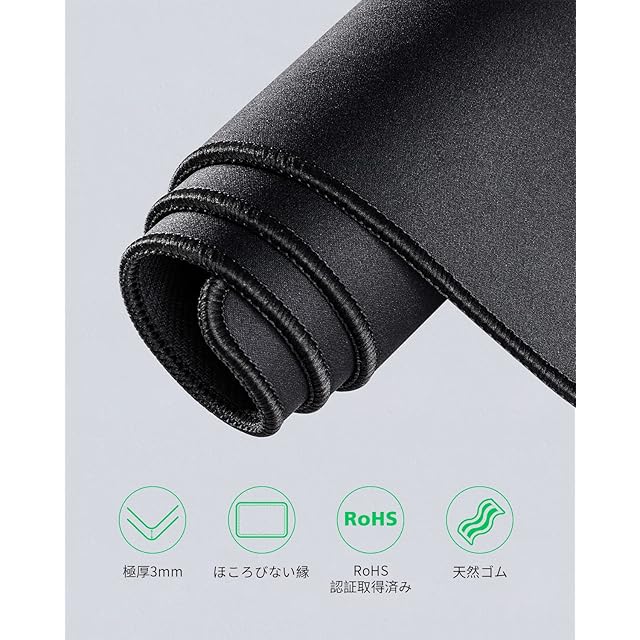 【シンプルで丈夫】 クラシックなブラック一色のデザインでゲームやオフィスにぴったりです。縁にステッチを施しているので、他社のXXXLマウスパッドのようにほつれたりバラバラになったりすることがありません。最上層のストリップがベースからはがれるのを防ぎます。