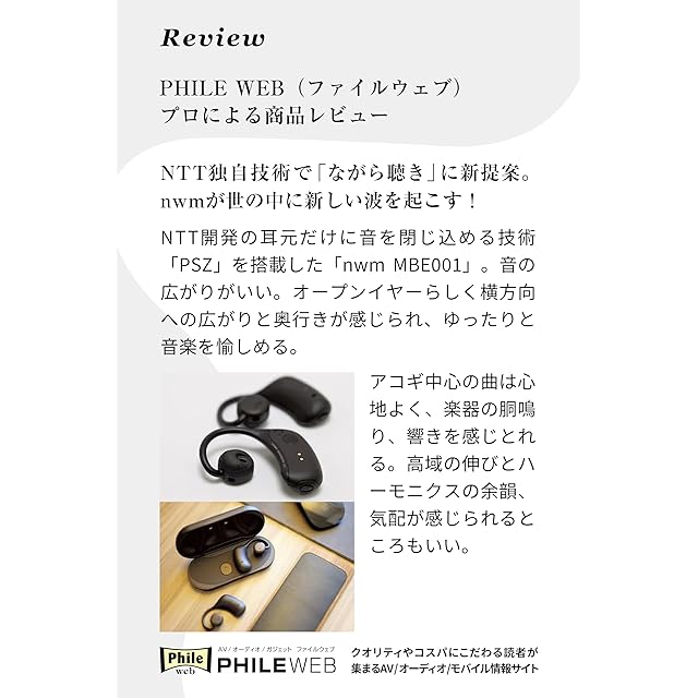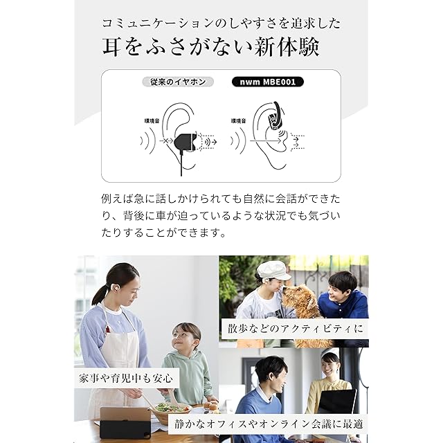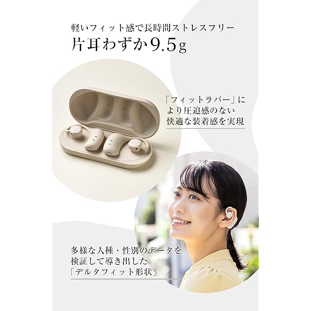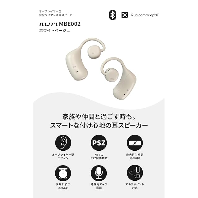 商品名:nwm (ヌーム) オープンイヤー ワイヤレス イヤホン 耳スピ 耳をふさがない 完全ワイヤレス 型 nwm MBE001 / NTT sonority PSZ技術搭載 bluetooth 5.2 マルチポイント接続 aptX対応 空気伝導 外音取り込み イコライザ機能 アプリ連携 軽量 マイク付き 本体電池持続6時間 Type-C ホワイトベージュ