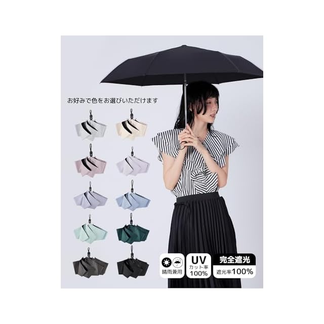 【UVカット*完全遮光】反射冷却素材を使用し、日傘を開いたら、傘下温度の上昇を大幅に抑え、最大-21.5℃、高密度の傘布と日焼け止めのブラックラバーコートを組み合わせた、優れた品質、優れたシェーディング効果、優れた断熱性。紫外線カット100%効果、UPF50+ 光透過率0、日差しの中で涼しく保ち、そしてあなたの肌を効果的に保護します。真夏の強い日差しを遮り、大切なお肌を太陽光線、紫外線からガードでき、日焼け対策アイテムとして猛暑を乗り切ります、UVカット率は100%以上。