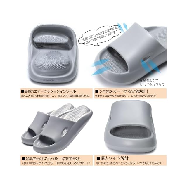[Alvisto] 理学療法士推奨 スリッパ 室内 サンダル 4cm超厚底 エアースリッパ ルームシューズ レディース メンズ ベランダ バス トイレ軽量 静音防滑 柔らか 抗菌防臭 EVA air slippers 銀灰 24.5-25.0cm | TREND DESIGN 家電専門店