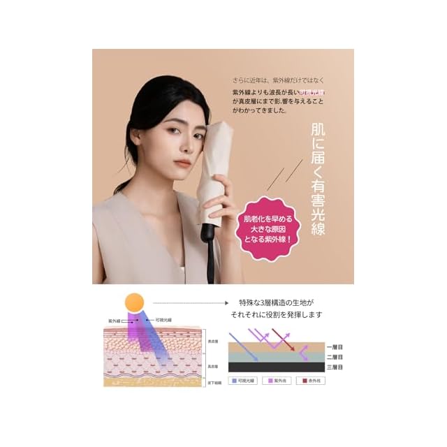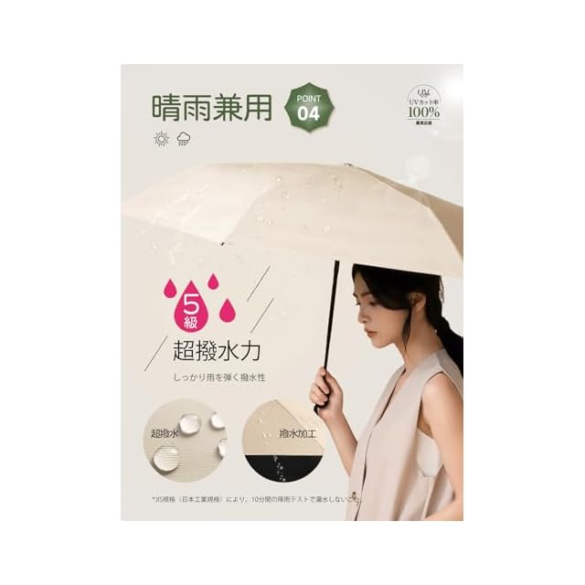 【晴雨兼用&超撥水性】最新型380 T防水織物生地を採用し、特別な加工により、出色の撥水性能を実現しました。使用後に軽く振るだけで傘が乾きます。また、内側は多層コーティング処理が施されており、紫外線を効果的にカットしますので、日よけとしてもご利用いただけます。