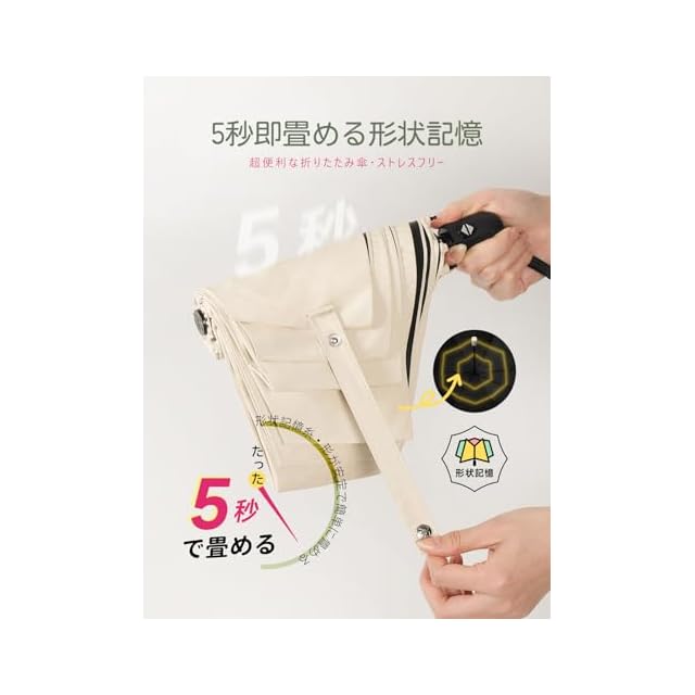 【 5秒でたためる傘】形状記憶 日傘 UVカット率 100% 晴雨兼用