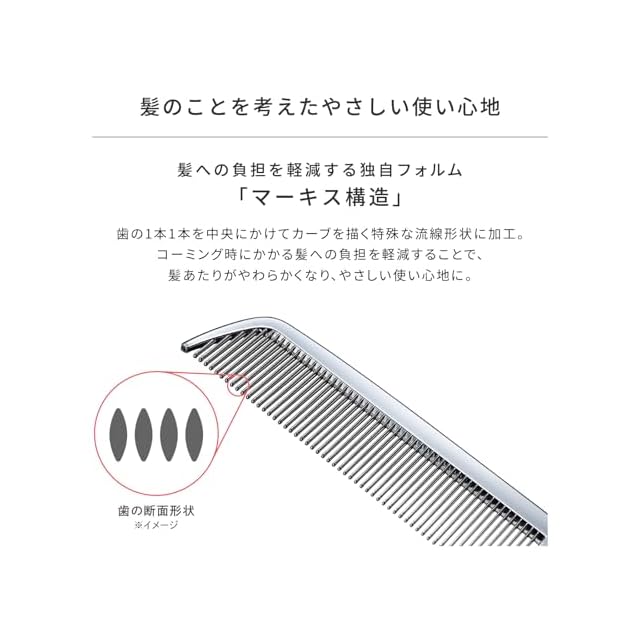 【静電気を軽減】髪にふれるコーム部分には、クロムメッキを採用。乾燥や摩擦により発生する静電気を軽減します。