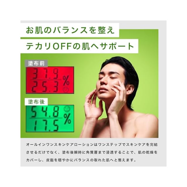 【1本に5役を集約したオールインワンスキンケアアイテム】この1本に化粧水・美容液・乳液・クリーム・アフターシェービングケアを集約しました。 【メンズスキンケアに適したサラッとした仕上がり】お風呂上がりにこの1本だけでしっとり肌に導きますが、肌に馴染むとサラッとした肌触りに仕上げます。 【アフターシェービングケアとしても使用可能】シェービング後の摩擦を受けてしまった肌をローションタイプのテクスチャが優しく包み込みケアをします。 【ご使用方法】洗顔後軽く水気をとり、手のひらに取り出し軽く馴染ませた後お顔にハンドプレスを行いながら馴染ませてください。かさつく方は同じ工程を2度行うことでよりしっとりに仕上がります。