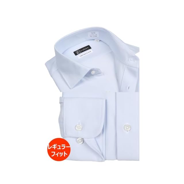 [アイシャツ] i-Shirt 完全ノーアイロン ストレッチ 超速乾 レギュラーフィット 長袖 アイシャツ ワイシャツ メンズ サックス 新レギュラーフィット 長袖セミワイド ストライプ M15123001481 首回り41cm×裄丈82cm