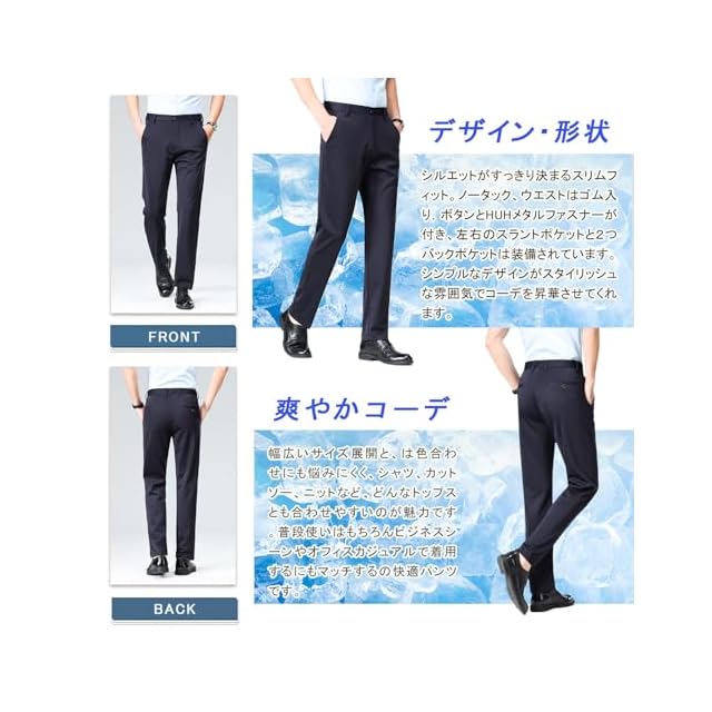 [HMT] スラックス メンズ ズボン 夏服 冷感パンツ スーツパンツ 接触冷感 薄手 ロングパンツ メンズ ビジネス 仕事着 パンツ ノータック ストレッチ ウォッシャブル スリム 美脚 大きいサイズ 春 夏