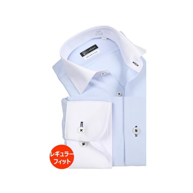 [アイシャツ] i-Shirt 完全ノーアイロン ストレッチ 超速乾 レギュラーフィット 長袖 アイシャツ ワイシャツ メンズ ブルー 新レギュラーフィット 長袖セミワイド ストライプ M15123001484 首回り37cm×裄丈80cm