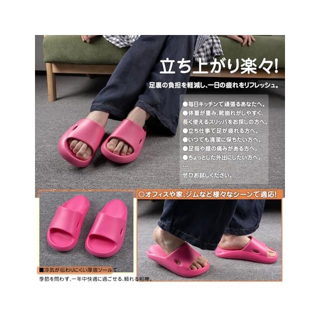 [Alvisto] 理学療法士推奨 スリッパ 室内 サンダル 4cm超厚底 エアースリッパ ルームシューズ レディース メンズ ベランダ バス トイレ 超軽量 静音防滑 柔らか 抗菌防臭 EVA air slippers ビビッドピンク 23.5-24.5cm