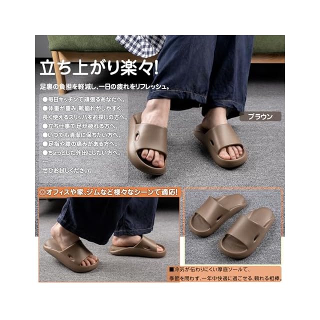 [Alvisto] 理学療法士推奨 スリッパ 室内 サンダル 4cm超厚底 エアースリッパ ルームシューズ レディース メンズ ベランダ バス トイレ 超軽量 静音防滑 柔らか 抗菌防臭 EVA air slippers ブラウン色 22.5-23.5cm | TREND DESIGN 家電専門店