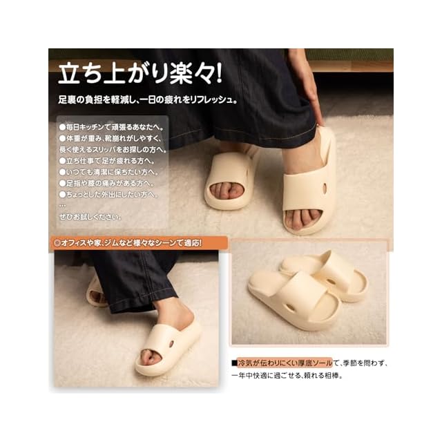 [Alvisto] 理学療法士推奨 スリッパ 室内 サンダル 4cm超厚底 エアースリッパ ルームシューズ レディース メンズ ベランダ バス トイレ軽量 静音防滑 柔らか 抗菌防臭 EVA air slippers アイボリー 24.5-25.0cm | TREND DESIGN 家電専門店