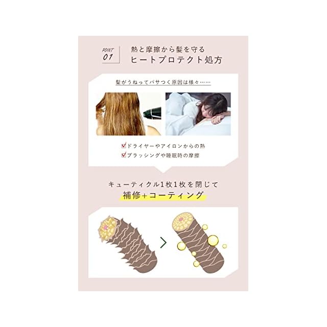 ✨【 保湿 × ダメージケア 】ブラッシング・睡眠時の摩擦やヘアアイロン・ドライヤーなどの熱から髪を守るヒートプロテクト処方。
