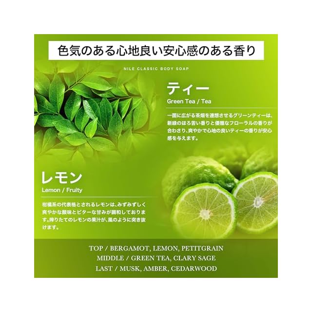 商品名:NILE クラシックボディーソープ400ml ティーシトラス(グリーンティーの香り)