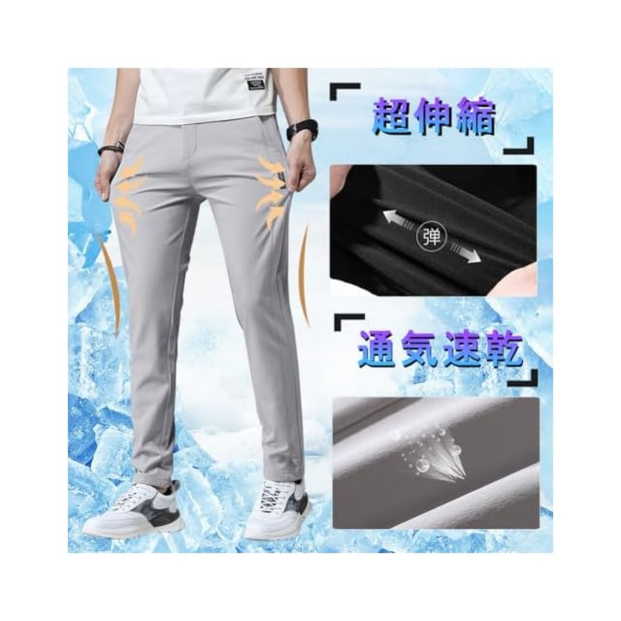 【接触冷感】冷感生地を採用して、肌と接触した瞬間に温度を下げるクール感があり、夏の常識を覆す!夏の蒸れに対応する男性用ジョガーパンツ。