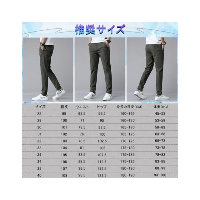 【28】身長:160-165cm 体重:45-53kg【29】身長:160-170cm 体重:53-58kg【30】身長:165-170cm 体重:58-63kg【31】身長:165-175cm 体重:63-68kg【32】身長:170-175cm 体重:68-73kg【33】身長:175-180cm 体重:73-78kg【34】身長:175-185cm 体重:78-83kg【36】身長:175-185cm 体重:83-88kg【38】身長:180-190cm 体重:88-93kg【40】身長:180-190cm 体重:93-100kg