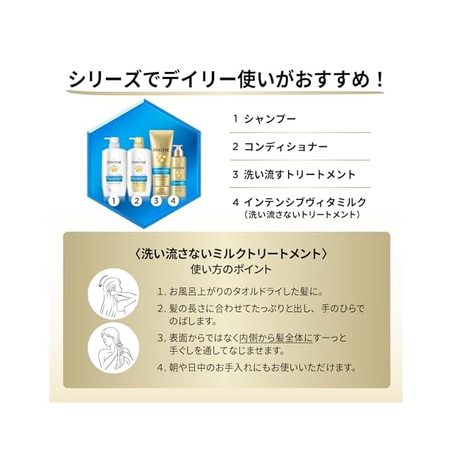 【パンテーン モイストスムースリペア インテンシブ ヴィタミルク 】ヒアルロン酸*配合 洗い流さないトリートメント:パサつく、うねり髪も しっとりまとまる