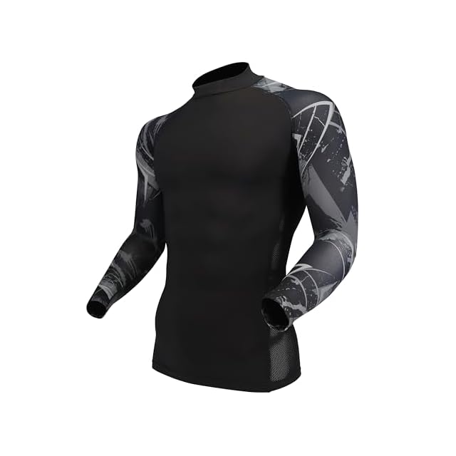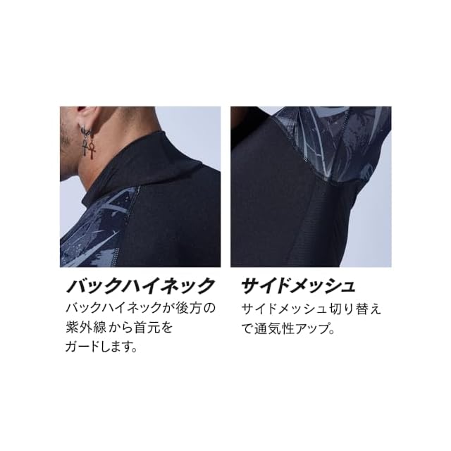 商品名:おたふく手袋 夏用インナー 長袖ハイネック[接触冷感 吸汗速乾 スピード消臭 UVカット コンプレッション メンズ]JW-625 カモフラxブラック LLサイズ