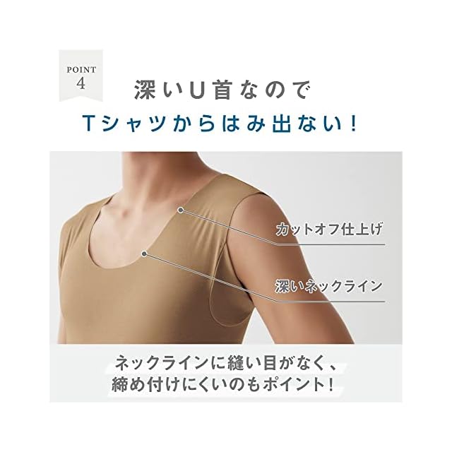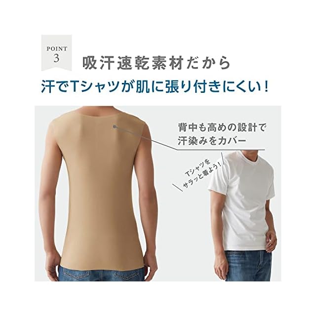 『Tシャツ専用』 インナー in.T(インティー)■首ラインが見えてしまうことがないように、広めの設計■汗取りパット生地を二重にすることで、脇汗をしっかりキャッチ■パット位置、汗は前身側に多くかくので、取り付け位置もそれに合わせて前側に配置