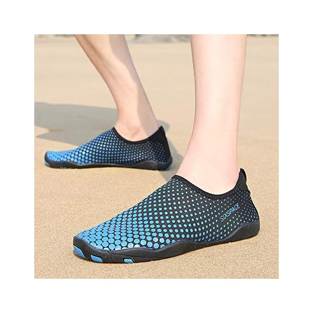Sixspace マリンシューズ ウォーターシューズ 水陸両用 アクアシューズ シュノーケリング ビーチシューズ 軽量 通気 ヨガ サーフィン 男女兼用 青 25cm