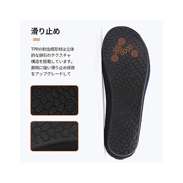 履き心地がいい:素足の感覚をそのままで! 超軽量マルチ機能性スキンシューズ。大人から子供までのサイズが揃えおるマリンシューズ。アッパーにはネオプレーンを採用することで、優れた伸縮性と排水性と通気性が期待できる。また、ソックスのような柔軟性で、履いても素足みたいな履き心地。弾力・伸縮性素材で足によくフィットし履き心地抜群。