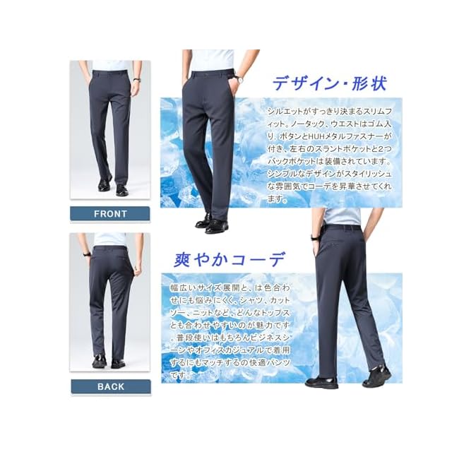 [HMT] スラックス メンズ ズボン 夏服 冷感パンツ スーツパンツ 接触冷感 薄手 ロングパンツ メンズ ビジネス 仕事着 パンツ ノータック ストレッチ ウォッシャブル スリム 美脚 大きいサイズ 春 夏 | TREND DESIGN 家電専門店
