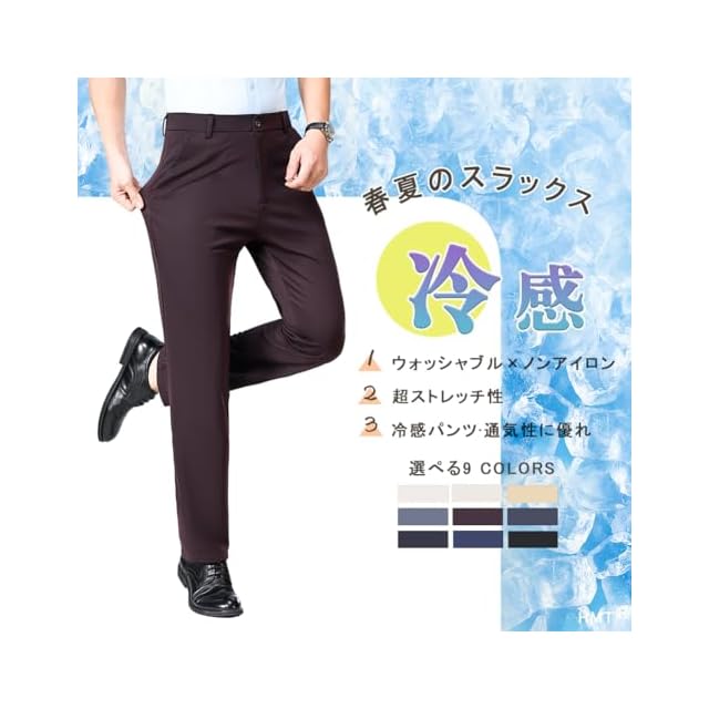 [HMT] スラックス メンズ ズボン 夏服 冷感パンツ スーツパンツ 接触冷感 薄手 ロングパンツ メンズ ビジネス 仕事着 パンツ ノータック ストレッチ ウォッシャブル スリム 美脚 大きいサイズ 春 夏