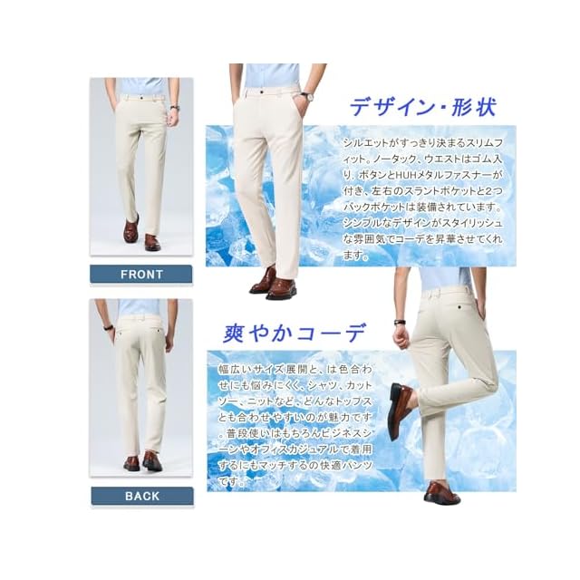 [HMT] スラックス メンズ ズボン 夏服 冷感パンツ スーツパンツ 接触冷感 薄手 ロングパンツ メンズ ビジネス 仕事着 パンツ ノータック ストレッチ ウォッシャブル スリム 美脚 大きいサイズ 春 夏