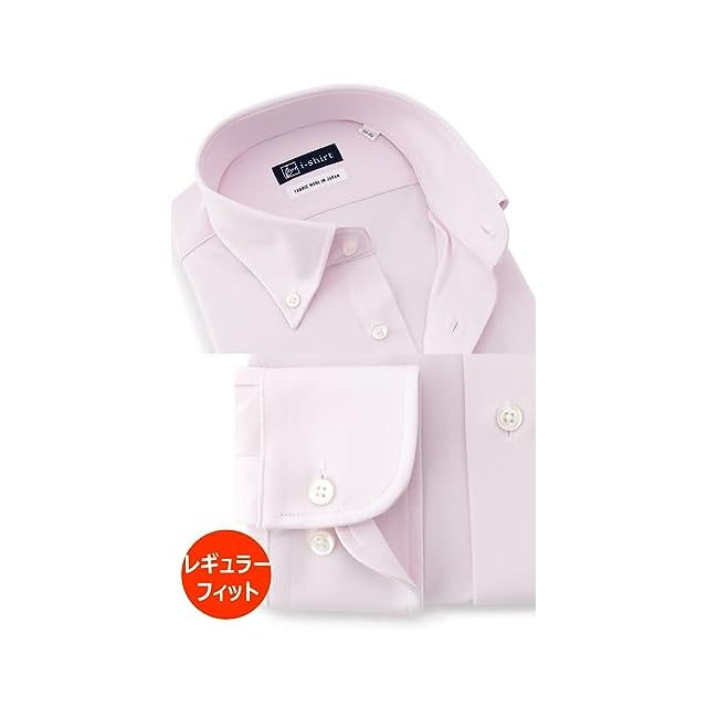 [アイシャツ] i-Shirt 完全ノーアイロン ストレッチ 超速乾 レギュラーフィット 長袖 アイシャツ ワイシャツ メンズ ピンク 新レギュラーフィット 長袖ボタンダウン 無地 M15121000222 M80(首回り39cm×裄丈80cm) | TREND DESIGN 家電専門店