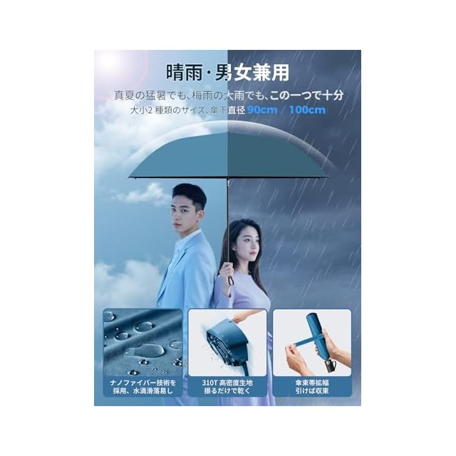 【大小2 種類のサイズ、傘下直径 90cm/100cm・9 色から選べます】90cm の小サイズは軽量で持ち運びが簡単で、いつでもどこでも風や雨を遮ってくれます。日常の通勤や買い物の際に、最適なお供となります。100cm の大サイズは、適切な遮蔽面積で、全方位の保護を提供します。突然の激しい雨でも、心配することはありません 。人それぞれユニークな個性とスタイルを持っています。UPEB が丹念にデザインした 9 色は、服との相性が良いだけでなく、それぞれ鮮明で特徴的です。傘を差して歩くすべての瞬間に、あなたが独一無二の風景になれます 。