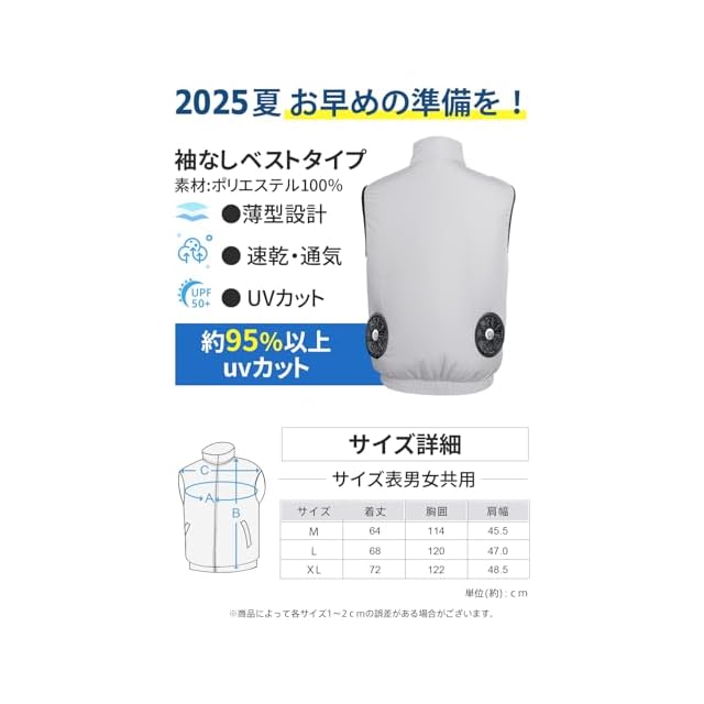 商品名:[Vivisan] 【2025革新 超軽量 · 薄型】 空調作業服 ベスト ファン付きベスト ファンバッテリーセット 35800mAh大容量 ファン付き作業服 冷却服 袖なし 空調ウェア 大風量 3段階風量調節 通気 UVカット 男女兼用 熱中症対策 (JP, アルファベット, XL, グレー(無地))