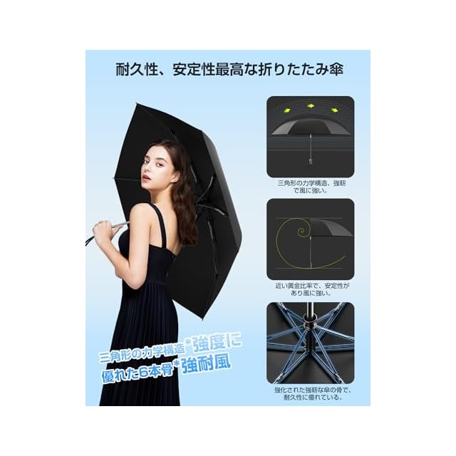 【耐久性が抜群!2年間の品質】ALwgreen超軽量日傘は、三角形の力学構造、黄金比に近い設計、高品質強化されたの素材を採用し、6級の強風に耐えることができます。コンパクトながらも、卓越した耐久性を備えており、安心して長期間ご使用いただけます。Blozeyは、長年、新技術・新製品を創造し続けています。そのために、研究開発に力を注ぎ続けています。常に業界トップクラスの品質を守り続けています。本製品は2年間の期間が付いています。万が一、商品に不具合が生じた場合には、弊社までご連絡いただければ、迅速かつ日本語で対応いたしますので、安心してご利用ください。