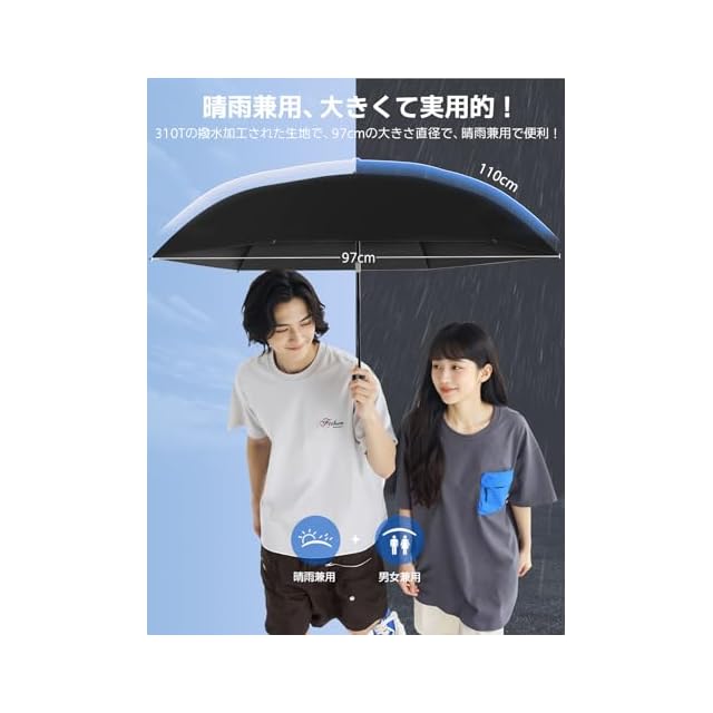 【大きい、より実用!晴雨兼用・男女兼用】ALwgreenは、軽量性を保ちつつ使用性を追求しました。最高レベルの防水テストを受けたAlwgreenの晴雨兼用傘は、雨だけでなく紫外線も防ぎます。超大サイズ(直径97cm)、傘面は110cmに拡大され、一般の晴雨兼用折りたたみ傘よりも15CM大きく、より広い範囲を保護します、2人分の快適なスペースがあり、雨の日でも濡れることなく過ごせます。310Tの高密度防水層は、雨水を瞬時に阻止し、乾かしやすく収納しやすいです。