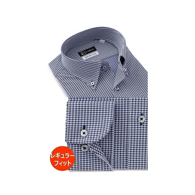 [アイシャツ] i-Shirt 完全ノーアイロン ストレッチ 超速乾 レギュラーフィット 長袖 アイシャツ ワイシャツ メンズ ネービー 新レギュラーフィット 長袖ボタンダウン チェック M15121003388 首回り43cm×裄丈84cm | TREND DESIGN 家電専門店