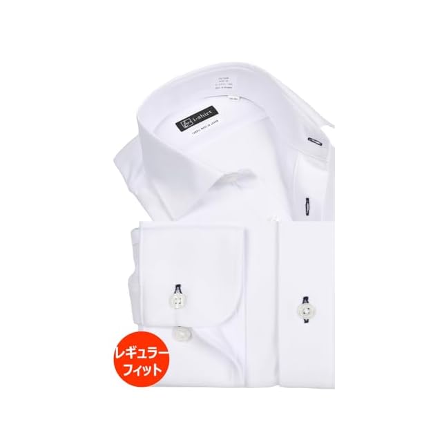 [アイシャツ] i-Shirt 完全ノーアイロン ストレッチ 超速乾 レギュラーフィット 長袖 アイシャツ ワイシャツ メンズ ホワイト 新レギュラーフィット 長袖セミワイド ストライプ M15123001401 首回り43cm×裄丈86cm