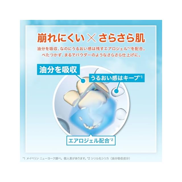SPF22の日焼け止め効果付き。エアロジェル(*1)配合で、うるおい感は残しつつ油分を吸収。しっかり密着。13色展開