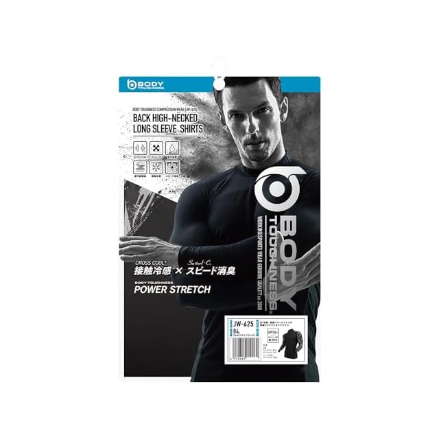 商品名:おたふく手袋 夏用インナー 長袖ハイネック[接触冷感 吸汗速乾 スピード消臭 UVカット コンプレッション メンズ]JW-625 カモフラxブラック Lサイズ
