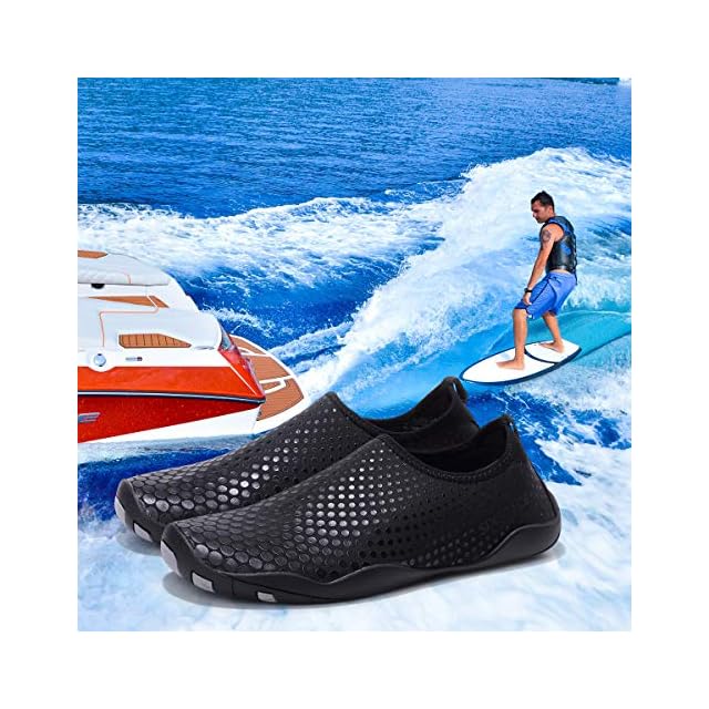 Sixspace マリンシューズ ウォーターシューズ 水陸両用 アクアシューズ シュノーケリング ビーチシューズ 軽量 通気 ヨガ サーフィン 男女兼用 ブラック 26.5CM