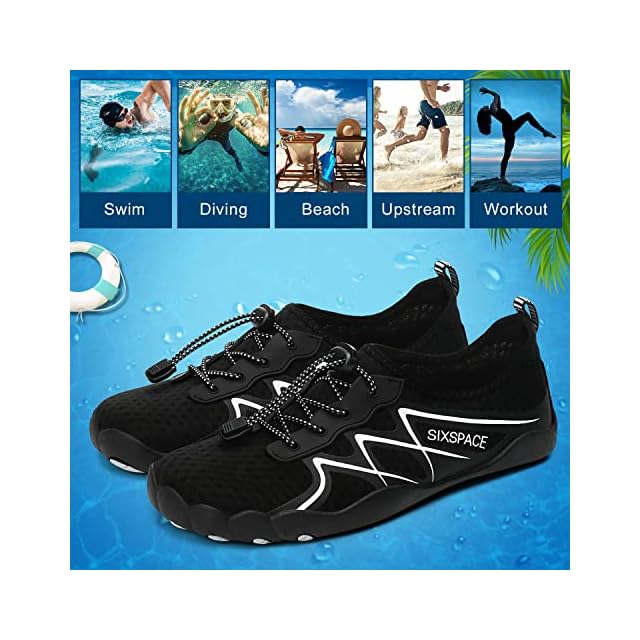 [SIXSPACE] マリンシューズ ウォーターシューズ アクアシューズ ビーチシューズ スニーカー ヨガ シュノーケリング 水陸両用 軽量 通気 ブラック 28.5cm | TREND DESIGN 家電専門店