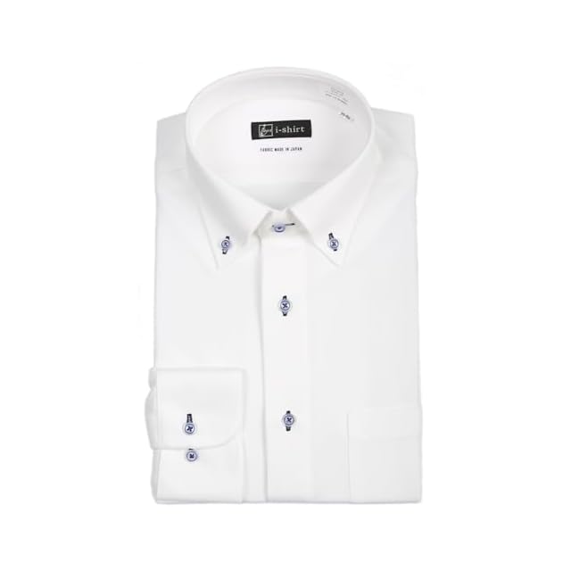 [アイシャツ] i-Shirt 完全ノーアイロン ストレッチ 超速乾 レギュラーフィット 長袖 アイシャツ ワイシャツ メンズ ホワイト 新レギュラーフィット 長袖ボタンダウン ダイヤ柄 M15123000901 首回り39cm×裄丈82cm | TREND DESIGN 家電専門店