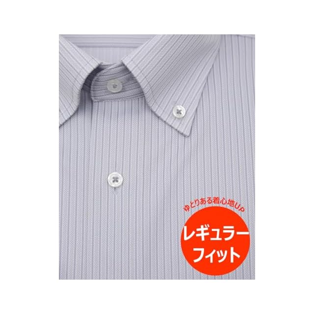 商品名:[アイシャツ] i-Shirt 完全ノーアイロン ストレッチ 超速乾 アイシャツ ワイシャツ メンズ グレー ストライプ柄 ボタンダウン レギュラーフィット 長袖 M15125000212 首回り43cm×裄丈84cm