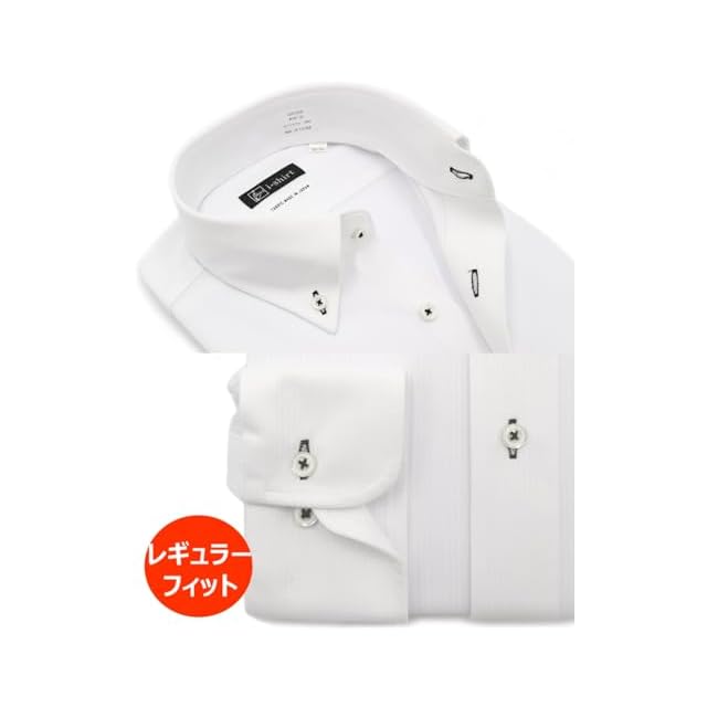[アイシャツ] i-Shirt 完全ノーアイロン ストレッチ 超速乾 アイシャツ ワイシャツ メンズ ホワイト ストライプ柄 ボタンダウン レギュラーフィット 長袖 M15125000301 首回り39cm×裄丈82cm | TREND DESIGN 家電専門店