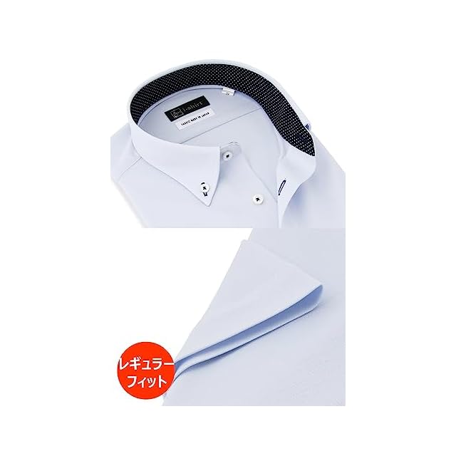 商品名:[アイシャツ] i-shirt 完全ノーアイロン ストレッチ 超速乾 レギュラーフィット 半袖 アイシャツ ワイシャツ メンズ サックス 半袖ボタンダウン ドビーチェック M16221001281 S(首回り37cm)