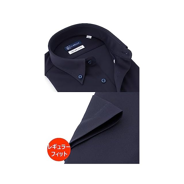 商品名:[アイシャツ] i-shirt 完全ノーアイロン ストレッチ 超速乾 レギュラーフィット 半袖 アイシャツ ワイシャツ メンズ ネイビー 半袖ボタンダウン 無地 M16221000288 3L(首回り45cm)