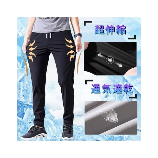 ズボン メンズ パンツ 接触冷感 夏服 ジョガーパンツ 涼しい 速乾 超ストレッチ スウェットパンツ 薄手 軽量 レギパン 美脚 イージーパンツ 部屋着 ボトムス アイスシルクパンツ 春 夏 (JP, 数字サイズ, 40, #01:ブラック(前閉じ調整紐)) | TREND DESIGN 家電専門店