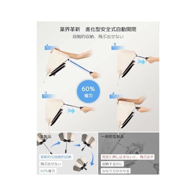【飛び出し防止安全設計】傘を閉じるのが難しい、またはちょっとした不注意で反発してしまうことがありますか?新世代のkonciwaワンタッチ自動開閉折りたたみ傘がこれらの問題を全て解決しました。konciwa独創の安全式段階的収納自動傘は、反発を防ぐながら段階的に収納し、省力60%!小学1年生のお子様でも簡単に使えます.