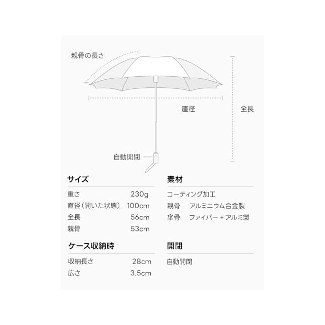 【コンパクト、超軽量、ビッグサイズ、頑丈】konciwaの折りたたみ傘は、最先端の軽量で丈夫なグラスファイバーとアルミ合金の骨組みを採用し、軽量性、コンパクトさ、頑丈さを実現! 開いた状態の直径は100cm、収納時の厚さは僅か3.5cm、超薄型でポケットに収納できる超コンパクト設計! さらに、約230gの重さは非常に軽く、毎日の持ち運びに最適! 通勤・通学、旅行、ハイキング、スポーツなど、あらゆるシーンで幅広く利用でき、老若男女問わず幅広い世代の方々にご利用いただけます!