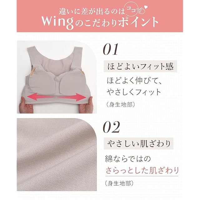 商品名:[ウイング/ワコール] ノンワイヤーブラ 綿混素材 ラクなのにきれい ムレにくく快適 【綿の贅沢】 ハーフトップ KB1031 レディース PI M