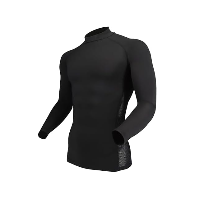 商品名:おたふく手袋 夏用インナー 長袖 ハイネック [接触冷感 吸汗速乾 消臭 コンプレッション UVカット メンズ] JW-625 ブラック S 【3枚セット】