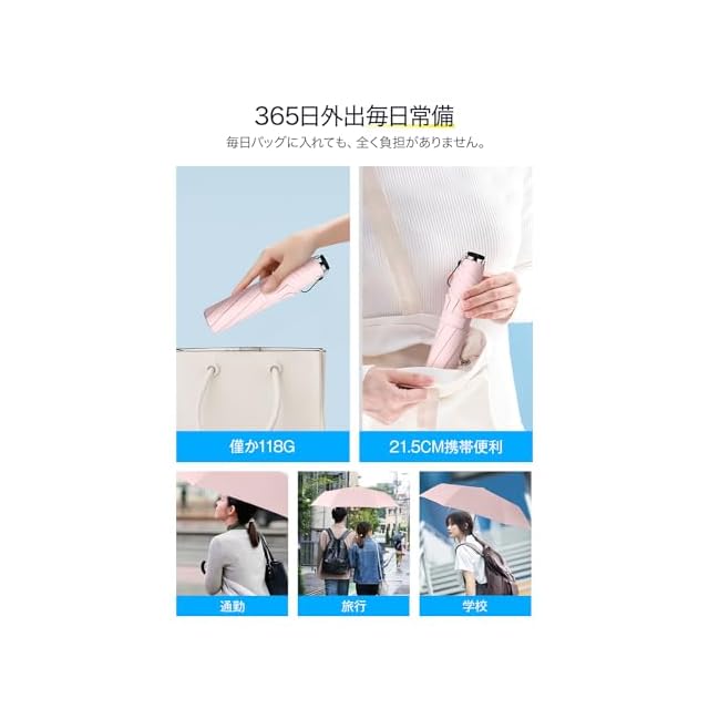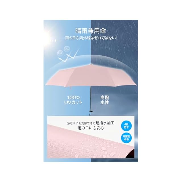 商品名:【2025新登場 & 118g軽量 & JIS認証】 日傘 UVカット 100%遮光 遮熱 折り畳み日傘 軽量 コンパクト 折りたたみ傘 兼用雨傘 紫外線遮断 耐風撥水 晴雨兼用 携帯便利 男女兼用 レディース メンズ キッズ 収納ポーチ付き (浅ピンク)