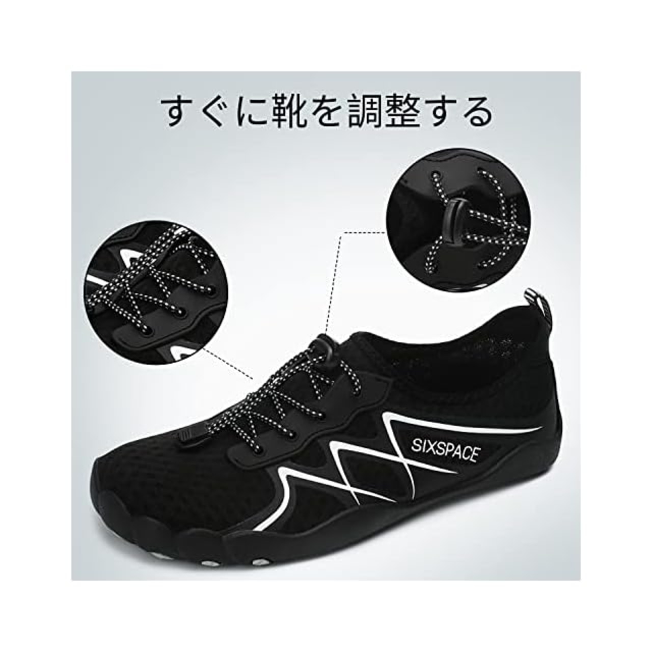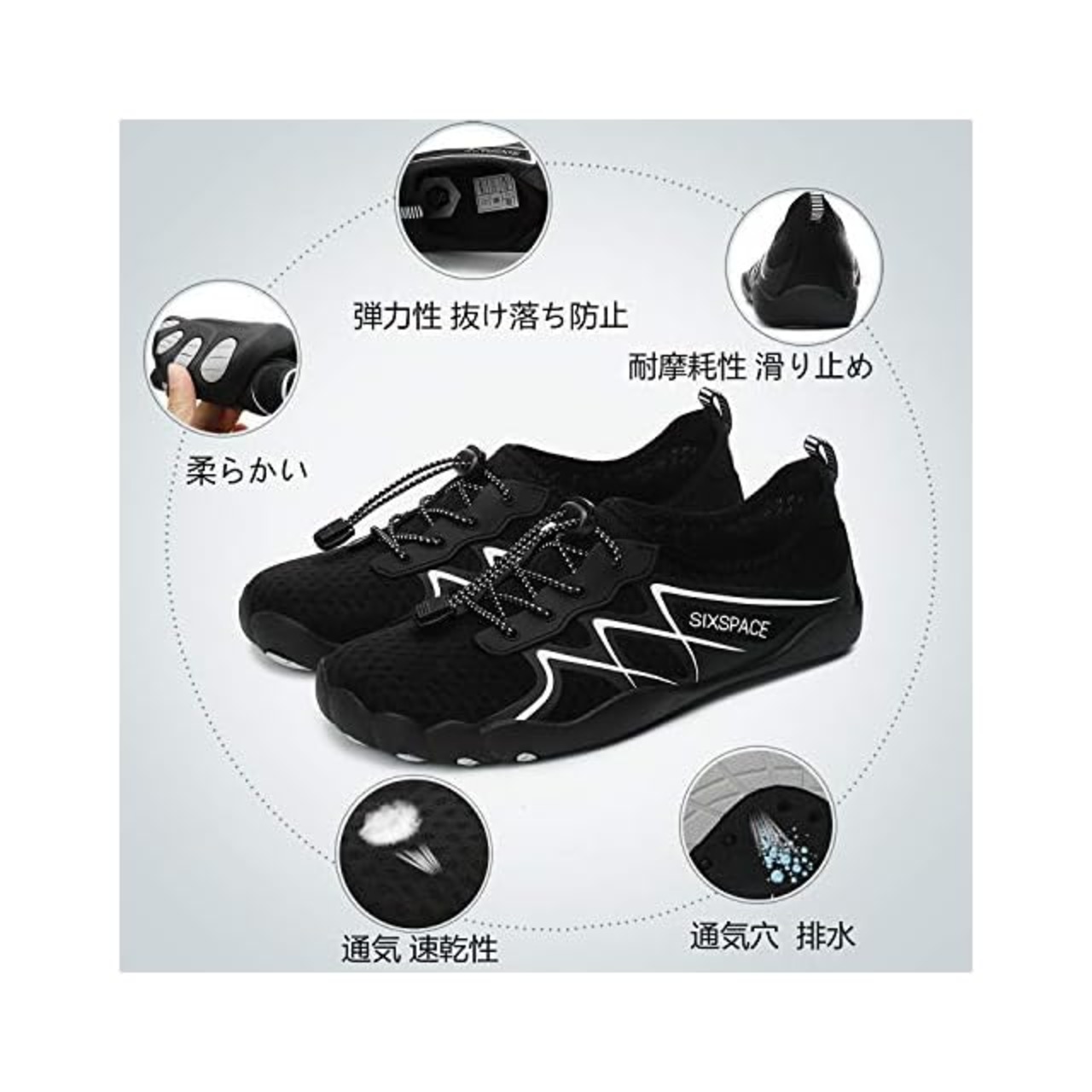 商品名:[SIXSPACE] マリンシューズ ウォーターシューズ アクアシューズ ビーチシューズ スニーカー ヨガ シュノーケリング 水陸両用 軽量 通気 ブラック 23.5cm