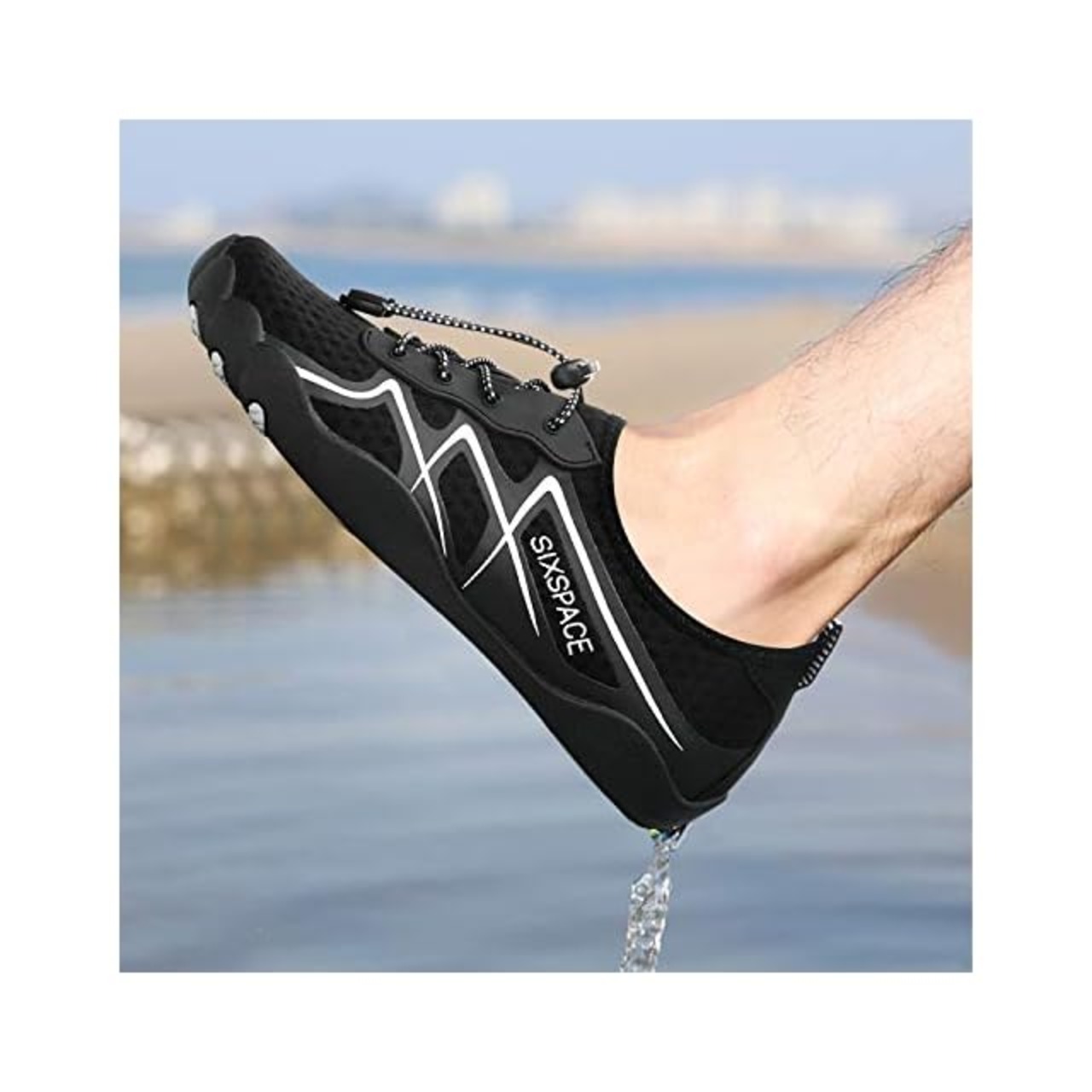 [SIXSPACE] マリンシューズ ウォーターシューズ アクアシューズ ビーチシューズ スニーカー ヨガ シュノーケリング 水陸両用 軽量 通気 ブラック 23.5cm